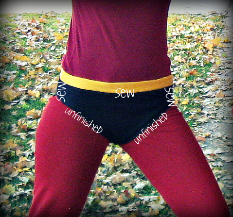 Sew the orange band (that's been folded down) to the top of the bottoms.