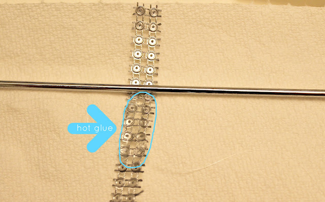 STEP FOUR: Place hot glue on underside of ribbon.