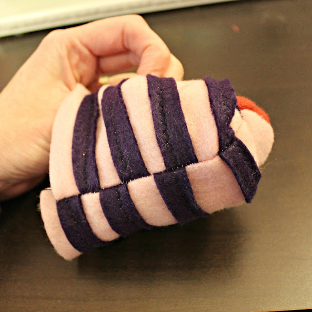 STEP TWELVE: If you're adding a tail. Cut out two tails, stitch down the sides, leaving the bottom open. Turn right side out and stuff with cotton.