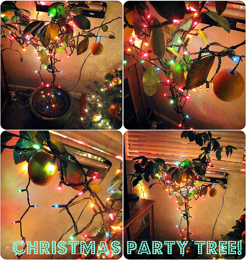 Hmm, after further debate we decided the lemon tree was just too much being decorated-- not to mention it probably could not withstand the weight of all those heavy lights.  It's slightly a wimpy tree.