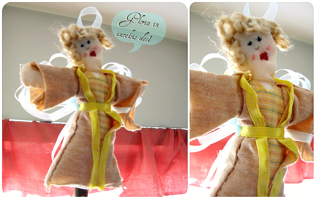 I made her our first Christmas together as a married couple.  We needed something for the top of our tree and I quickly sewed up this lovely lady with scraps of fabric I had laying around.