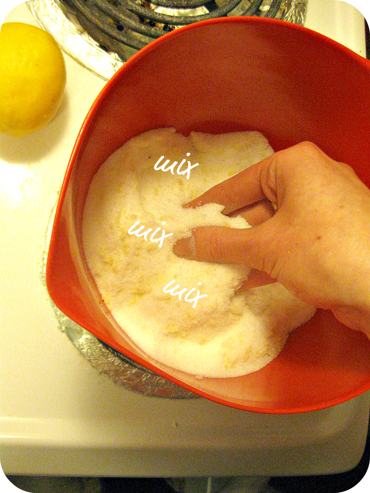 The one thing I thought that was kind of weird was when it tells you to add sugar and lemon zest together and then rubbing it with your fingers to blend.