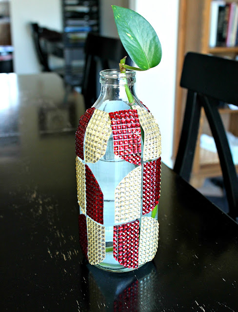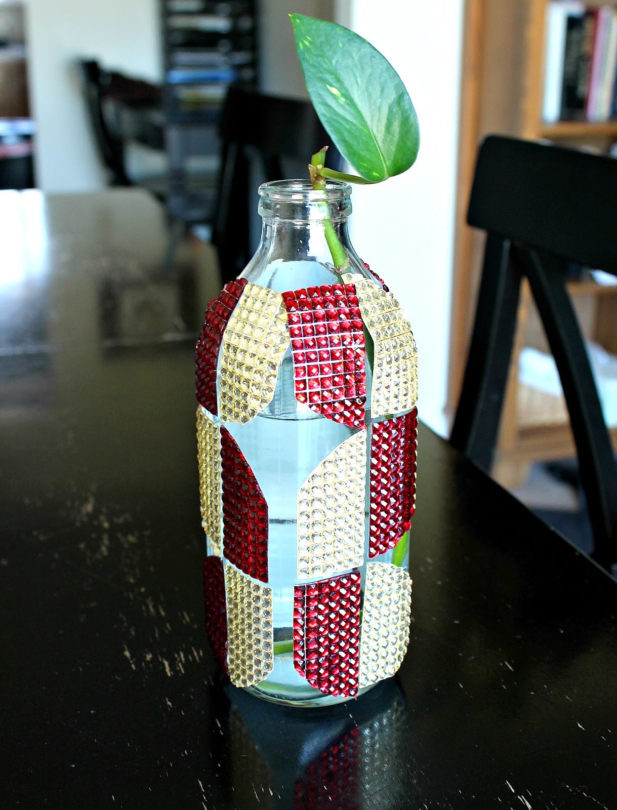 Look at how simple it was to add sparkle to an ordinary, recycled glass bottle.