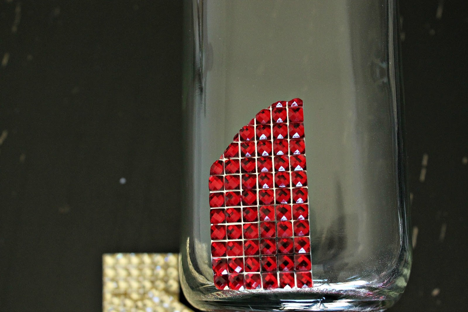 STEP FIVE: Peel off the back and attach your gems to your glass bottle.