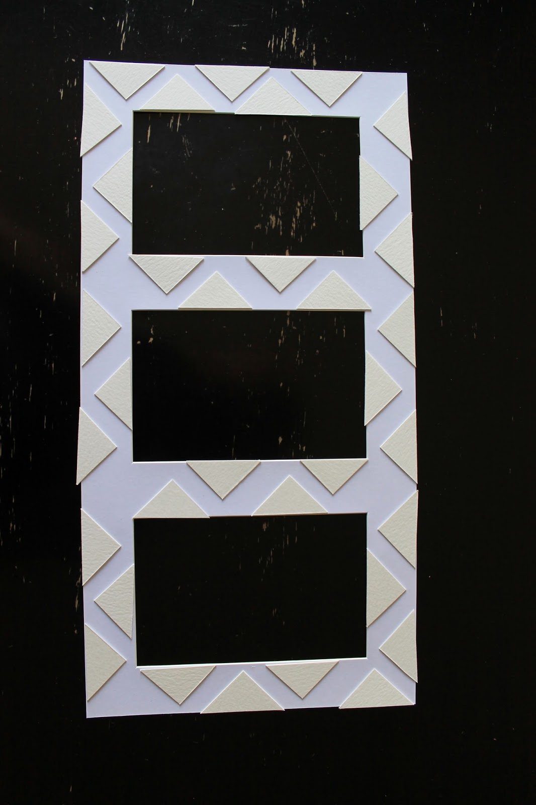 Using thick watercolor paper, I cut out many, many triangles and made a unique triangle plan for each mat.