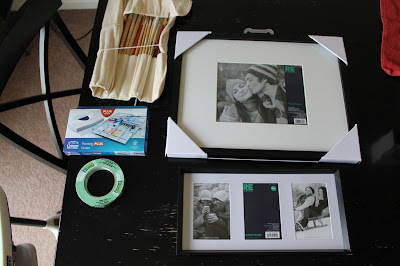 After a quick trip to target I came home with some really cute frames that I thought would work great. Problem? They were too white and boring (we're trying to avoid this -- being as all the walls are super white and boring already.)