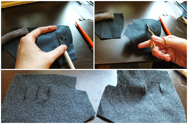 STEP SEVEN: Using a seam ripper make a teeny hole, then very carefully cut the six straight lines. I used my teeny embroidery scissors.