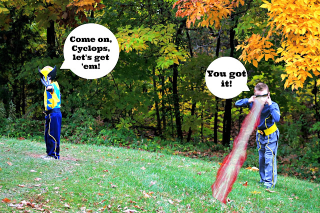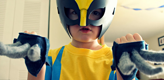 We're slowly getting Halloween ready in this home. This guy decided months ago that he wanted to be Wolverine. I don't know why, but the idea has stuck so we're going with it. Two days ago he asked me when I was going to start on his costume-- and could I pleeeeeease do the claws first?