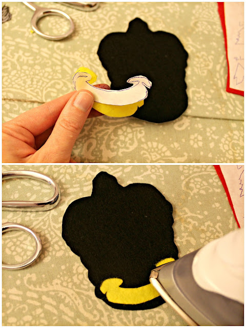 Peal off Heat'n Bond paper. Apply felt, bond side down, in place. Iron down for 20 seconds.