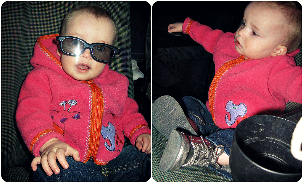 Being that we still had some extra time we let the kids "play" at the video game machines for a bit before taking our seats. We're such nice parents.