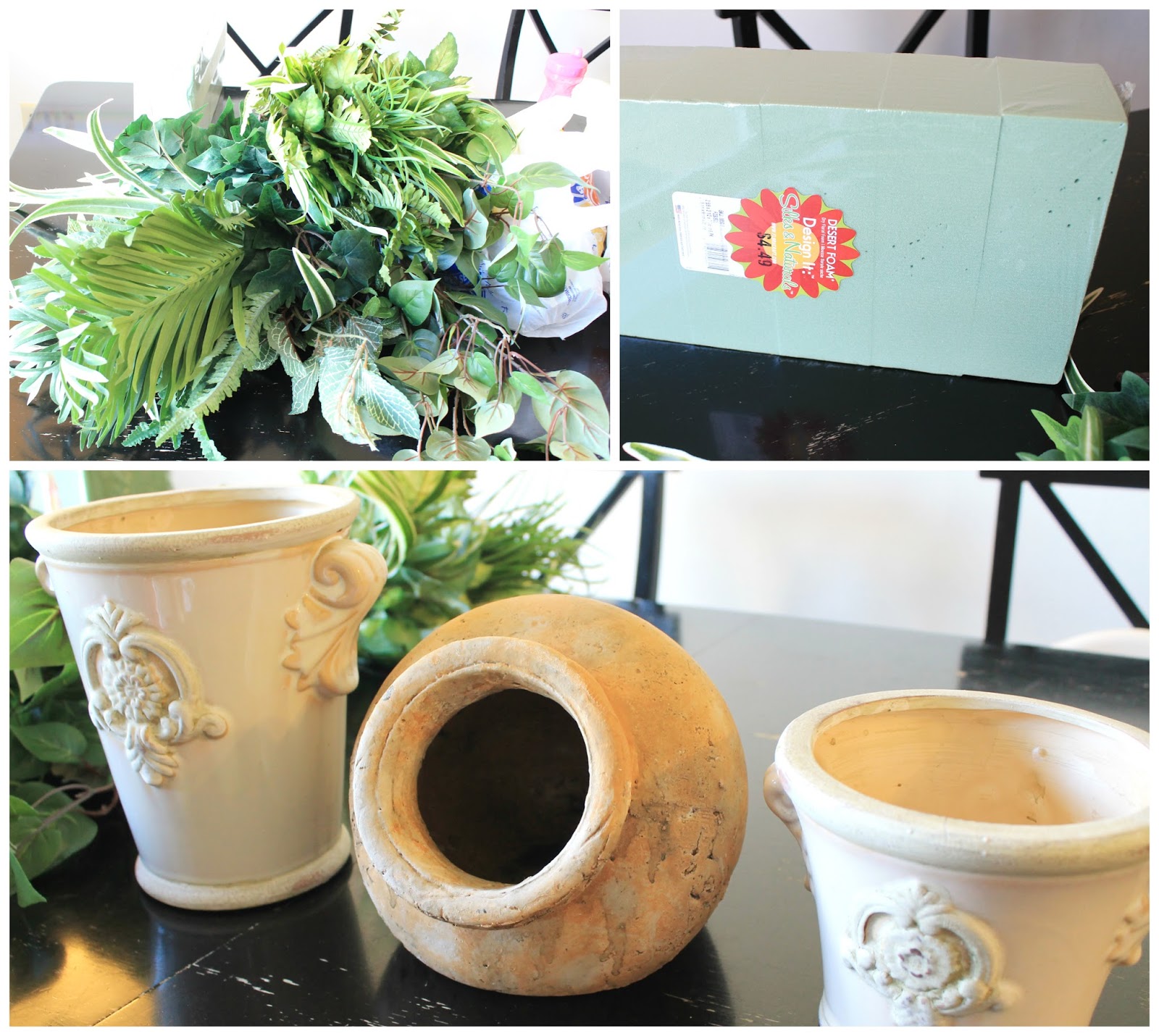 Then I noticed all the fake plants and the pots were all 50% off -- Score. I decided to try my hand at fake plant arranging. I remembered my mom doing a bit of this growing up. So I decided to wing it.